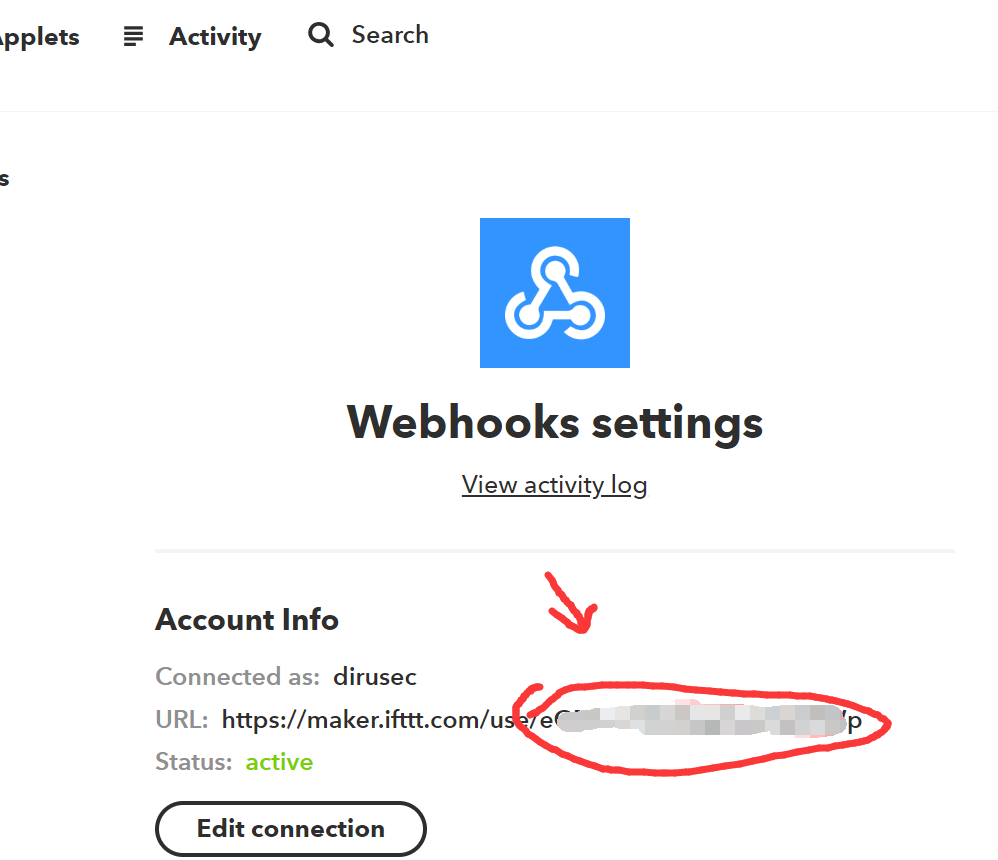 接着,在 IFTTT 的 Webhook 页面 上找到你的 Key,并记录好